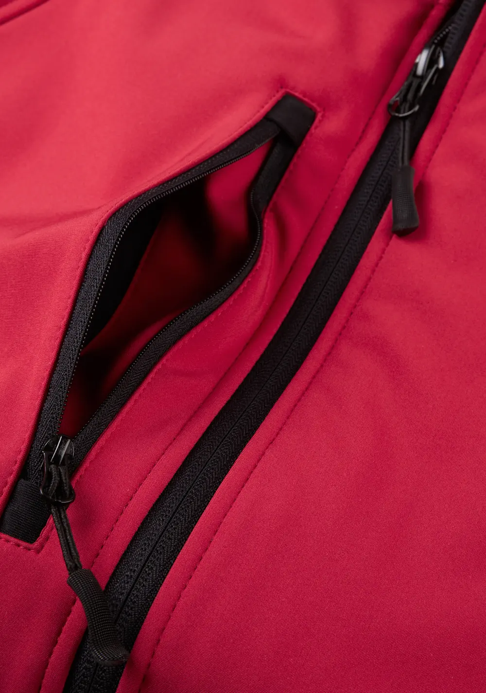 3-layer softshell fabric with breathable membrane and bonded microfleece lining, water resistant to 5000mm.
