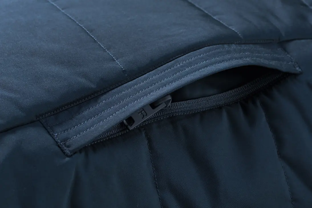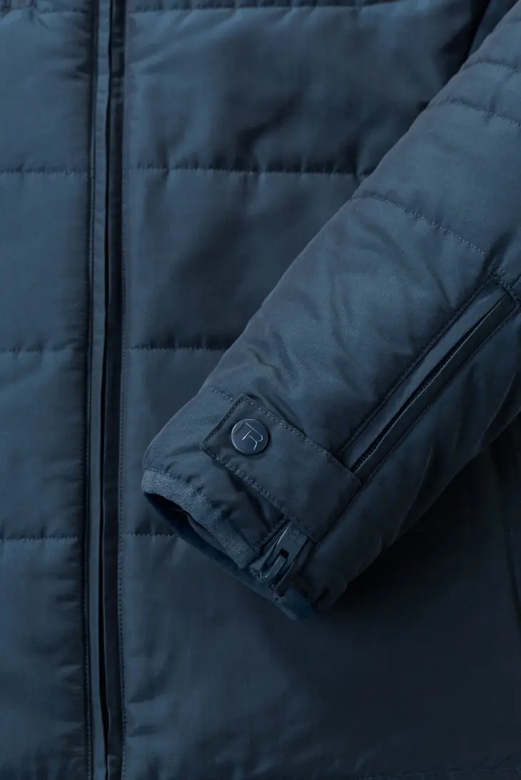 Contemporary shaped fit - High performance DWR fabric treated with Aquapel™ by Nanotex® - Fluorine and PFC free - Eco-efficient padding by Dupont™ Sorona® - Stand up collar with 2 snap fastener and inner storm flap to ward off wind and draught - Reversed zips at centre front, chest pocket, side pockets and sleeves - Zipped inside pocket - Decorative sleeve flap with snap fastener - Discreet decoration access at inner left chest