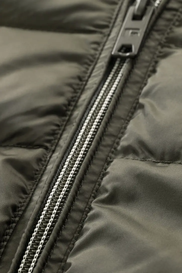 High performance DWR fabric treated with Aquapel™ by Nanotex® - Fluorine and PFC free - Eco-efficient padding by Dupont™ Sorona® - Stand up collar with chin guard and inner storm flap to ward off wind and draught - Contrasting zips, lining and accents for a refined look - 2 side pockets and 1 zipped inside pocket - Stretch binding at sleeves and hem - Adjustable 3-parted removable hood - Discreet decoration access at inner left chest