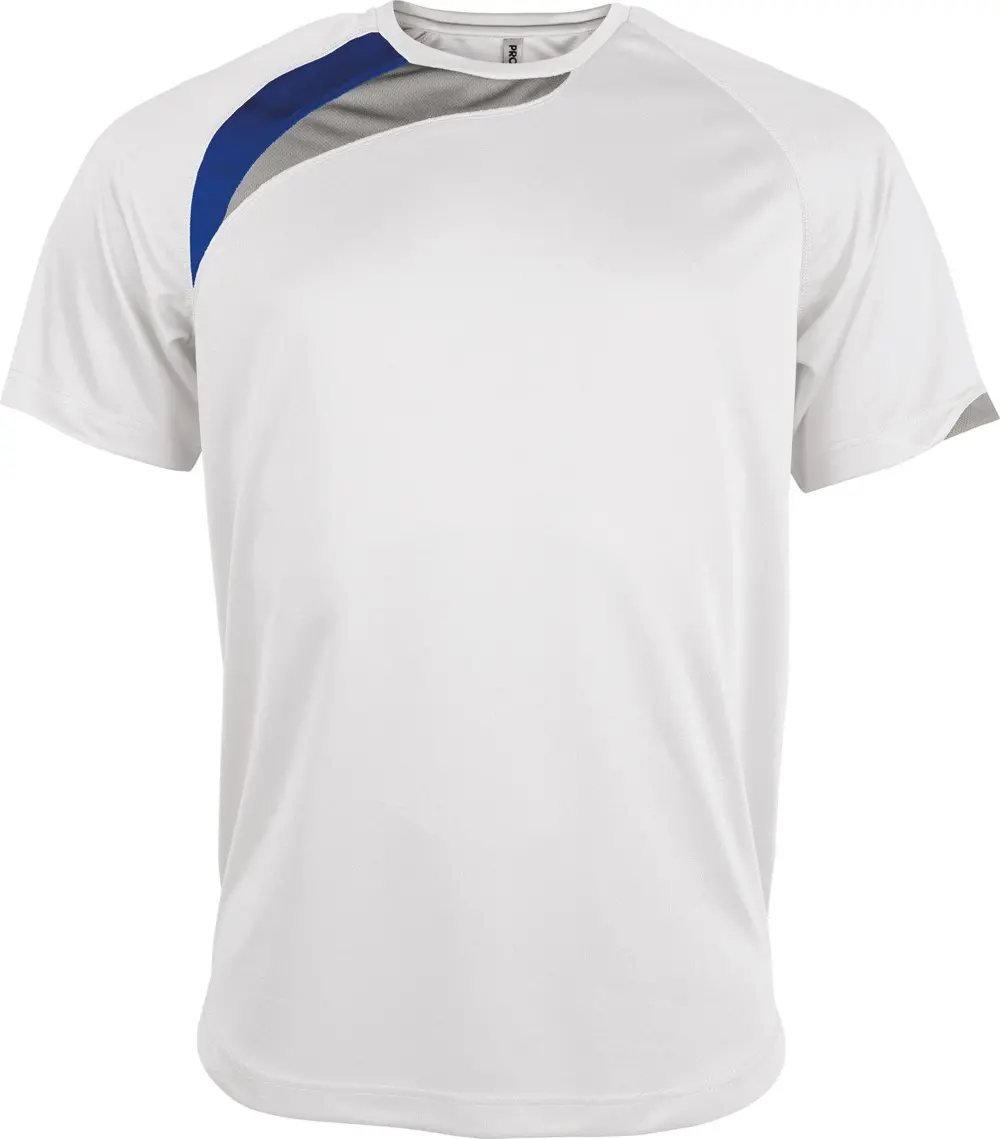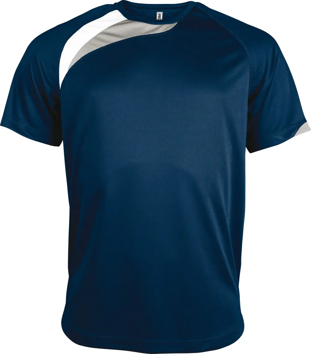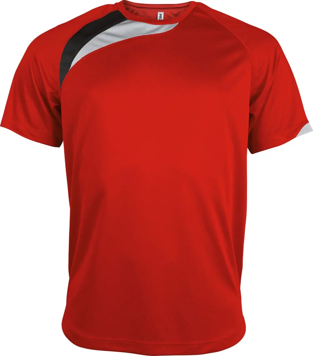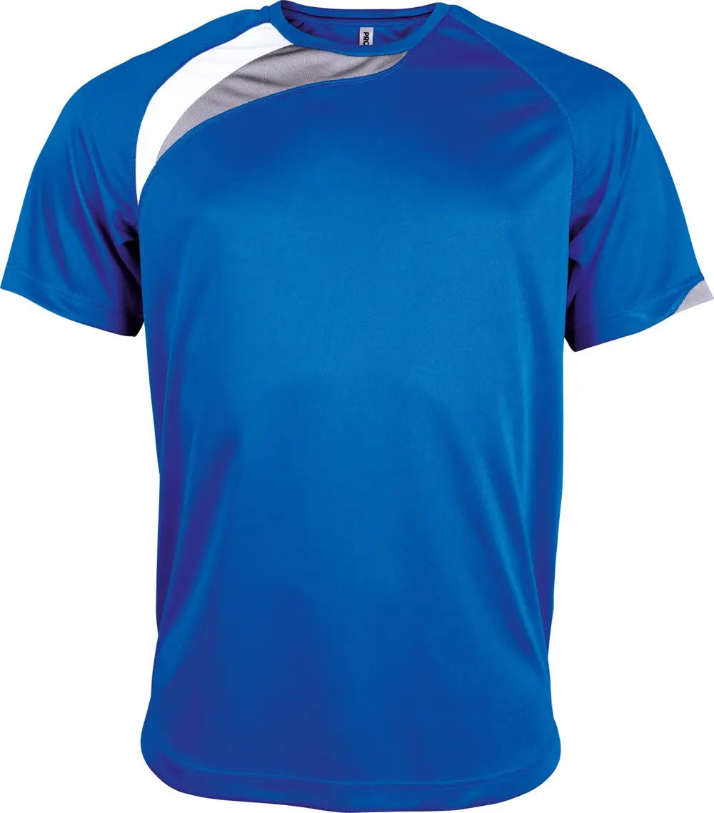 -100% polyester -Quick drying fabric -Contrast panels -Matching coverstitch finishing -Twin needle finishing.