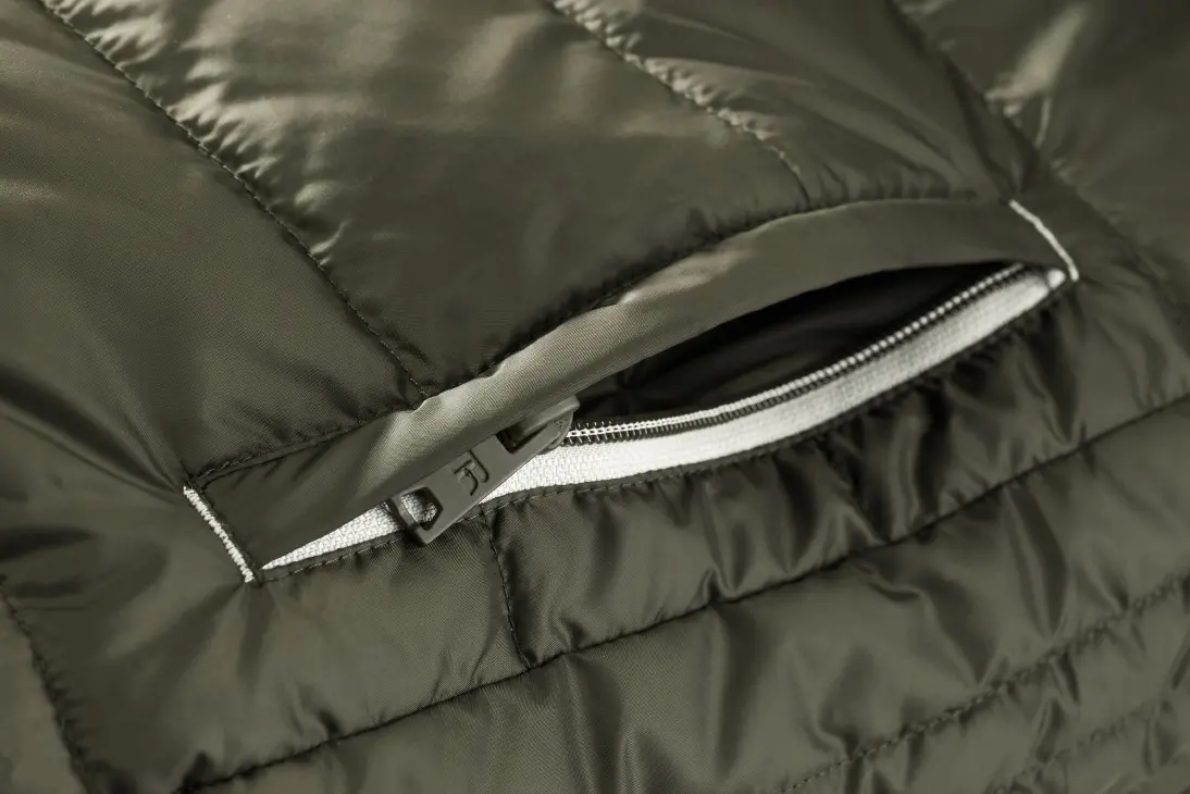 High performance DWR fabric treated with Aquapel™ by Nanotex® - Fluorine and PFC free - Eco-efficient padding by Dupont™ Sorona® - Stand up collar with chin guard and inner storm flap to ward off wind and draught - Contrasting zips, lining and accents for a refined look - 2 side pockets and 1 zipped inside pocket - Stretch binding at sleeves and hem - Adjustable 3-parted removable hood - Discreet decoration access at inner left ches7